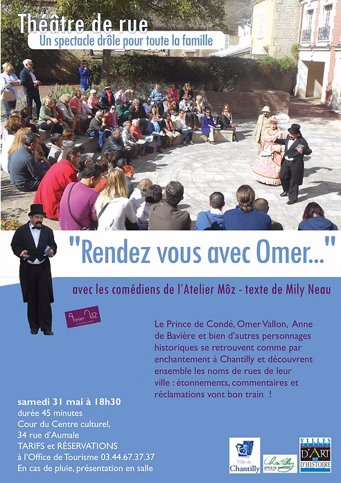 Dans le cadre du label « Ville d’art et d’histoire » l’Atelier Môz a collaboré à plusieurs reprises avec l’animatrice du patrimoine Sarah Gillois afin de créer des visites théâtralisées historiques et des contes pour enfants mettant en avant le patrimoine de la ville. Ainsi Vatel, André Lenôtre, Jacques de Manse, Anne de Bavière ou encore la sœur Petit jean (responsable de la pharmacie Condé) ont pris vie dans les lieux de Chantilly pour le plus grand bonheur des petits et des grands.
